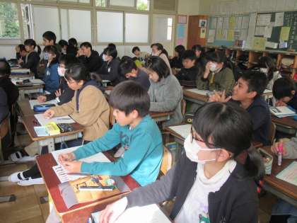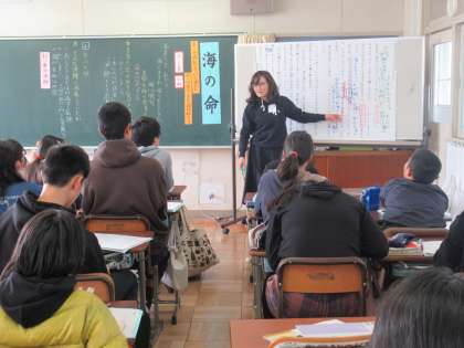 作品の叙述から、登場人物の気持ちを読み取っていきます。「海の命ノート」を使って、大事なところに線を引きながら学習を進めていきます。