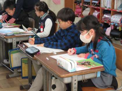 筆算の計算練習を黙々としています。繰り返すことは、大切です。