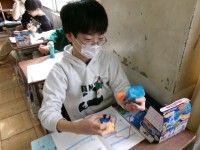 分数を整数でわるわり算の計算のしかたを考えるのが今日のめあてです。まずは自分で考え、その後みんなで確かめます。代表の子が、黒板で考え方を説明していました。考えを自分の言葉でわかりやすく説明する力は、学習でも生活の場でも、とても大切ですね。