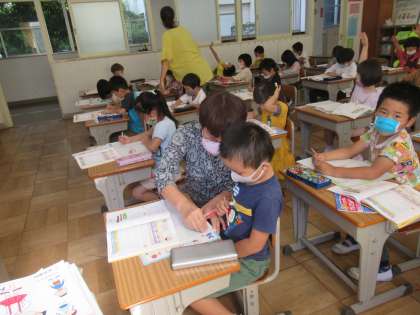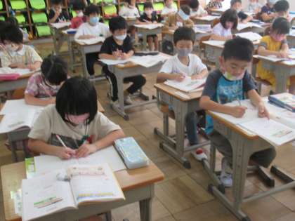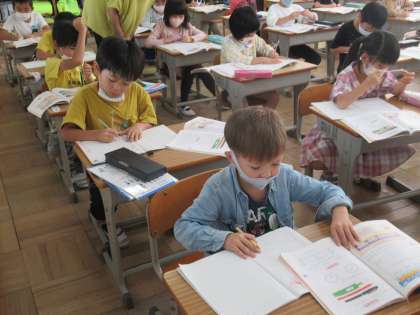 今日は、復習問題を解きました。教科書の問題を自分のペースで解いていきます。ノートも上手に使えるようになってきました。