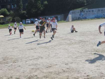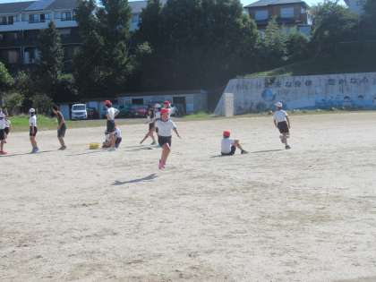 バトンパスの練習をした後、実際にリレーをしてみました。今日は担任の先生も一緒に走りました。これからたくさん練習して、タイムをあげていけるといいですね。