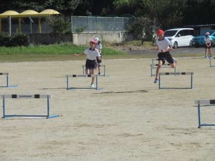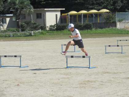 6年生の体育は、引き続きハードル走の学習です。脚の動きをスムーズに行うとタイムが上がります。脚の動きを意識してみましょう。