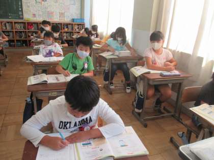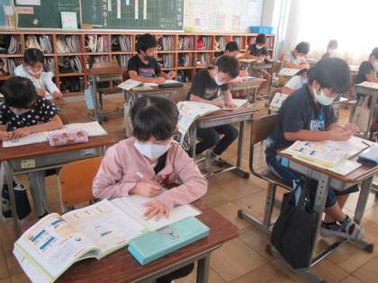 今日は、「重さ」の単元のまとめをしました。それぞれのペースで教科書の練習問題を解いていきます。集中して取り組むことができましたね。