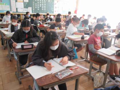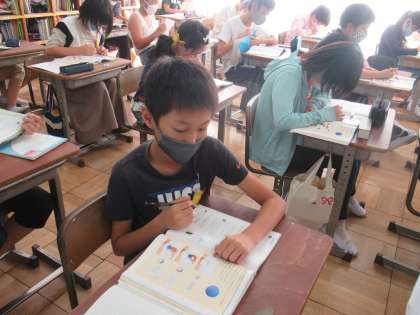 複雑な形をしたプールに入るおよその水の体積を求める問題を解いていました。底面を長方形とみて考えれば、およその水の体積が求められますね。
