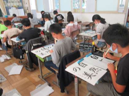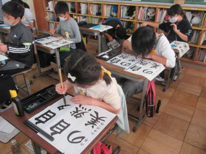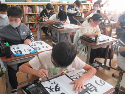 今日から書写コンクールの作品に取り組み始めました。6年生は4文字の作品です。字の大きさやバランスに気をつけて書くことができました。これから練習を重ねて、よい作品にしていきましょう。