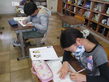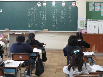 「三本のかさ」のお話で、お礼を言うときの気持ちについて話し合いました。