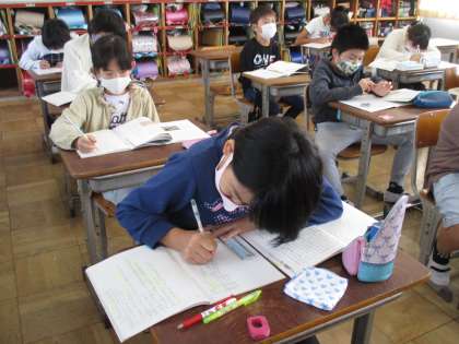 「世界にほこる和紙」の学習で、和紙のよいところを見つける読み取りをしていました。
