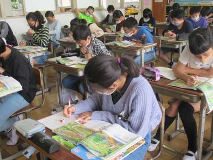 教科書に載っている大名行列の絵を見て、気づいたことをノートに書いていました。「馬に乗っている人がいる」「かごを担いでいる人がいる」「きれいに列になっている」など、たくさんの気づいた点を発表することができました。