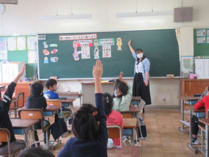 今日は、栄養教諭の先生に食の指導をしていただきました。「食べ物をバランスよく食べよう」をめあてに学習しました。今日の給食に使われている食材を、栄養素ごとに分類していました。おいしくて、栄養バランスのとれた給食です。感謝して食べたいですね。