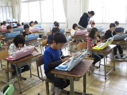 「タンギングをつかってえんそうしよう」の学習で、鍵盤ハーモニカの練習をしました。