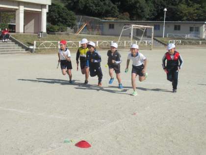 3年生は、リレーをしました。初めにバトンパスのしかたをみんなで確認し、バトンパスの練習をした後、リレーをしました。どのチームも一生懸命走ったり応援したりしていました。がんばりましたね。