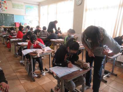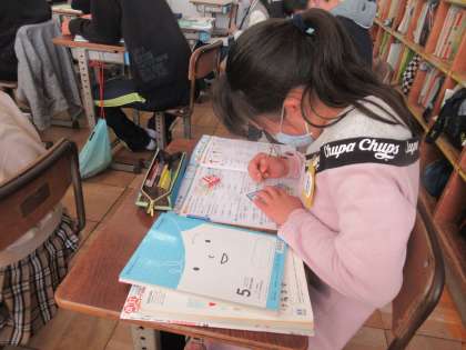 算数では今までに学習した内容を復習しています。今日は、がい数を復習していました。どの位で四捨五入するとよいか、「以上・以下・未満」という言葉の意味など、思い出すことができたかな。