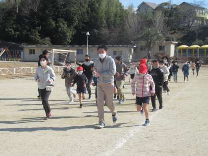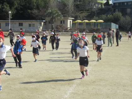 今日も元気に持久走をしました。風もなくよい天気で、走っている途中に上着を脱ぐ人がたくさんいました。2月いっぱい持久走が続きます。がんばって走りましょう。
