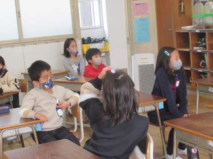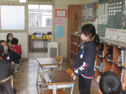 2年生は、ペア交流会の計画を立てていました。どんなゲームをするとみんなで楽しめるかを考え、意見を発表していました。話をしている人の方を向いて、しっかりと聞く姿勢をとることができていました。