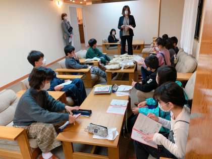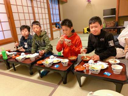 班長会をして、朝ごはんを食べました。