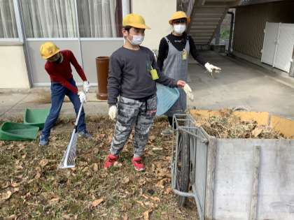 屋外は花壇の掃除や、運動場に土を入れたりしました。