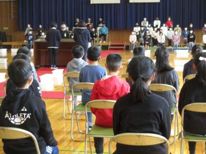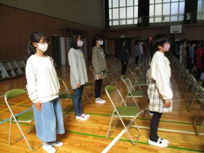 在校生(4・5年生)と卒業生(6年生)の全体練習をしました。
