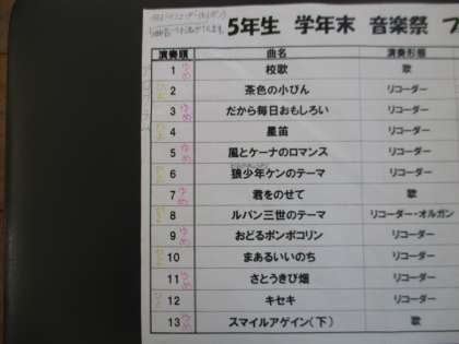 今年最後の音楽の授業で、音楽祭をしました。