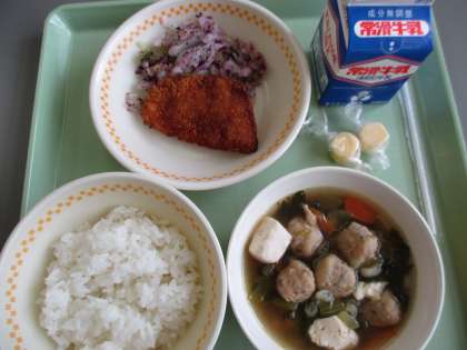 ・キャベツのゆかりあえ ・茎わかめ入り団子汁