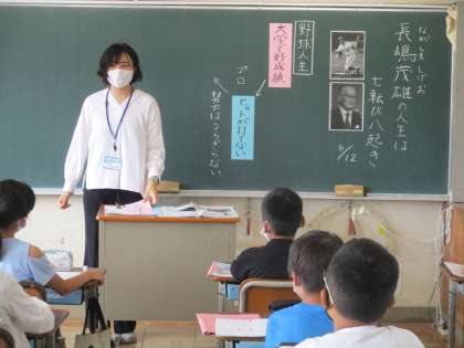 5年生の道徳は、「長島茂雄の人生は七転び八起き」です。