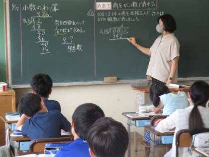 わり算の答え(商)を、四捨五入で概数にする筆算をしました。