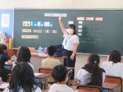 食の指導の授業がありました。「清涼飲料水の糖分」について考え、生活習慣病にならないための食について学びました。また、砂糖の取り過ぎに気を付けつける必要があることも知りました。