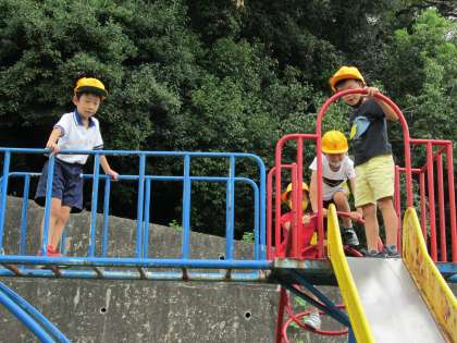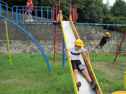 子どもたちが外で元気に遊んでいる様子、学校のよい景色です。