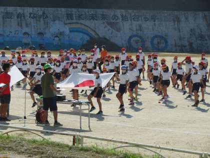運動会総練習をしました。開会式、徒競走、玉入れなどの進め方を確認しました。運動会当日は、すがすがしい秋晴れの下で実施できるといいです。