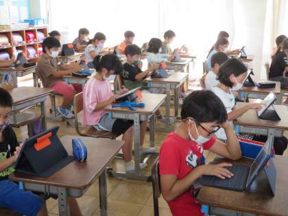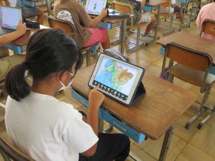 タブレットを使い、愛知県の市町村の位置を確認しました。知多半島の5市5町はきちんと覚えてほしいですね、