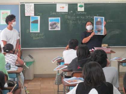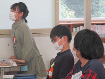 かめやわしがどこに住んでいるのか、英語で質問と答えのやりとりをしました。