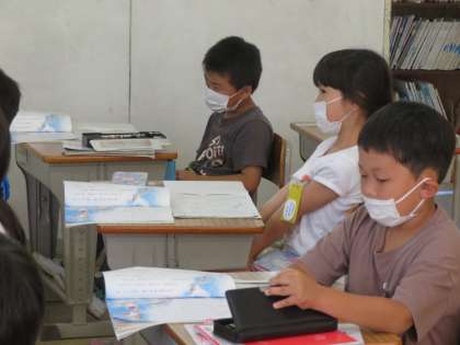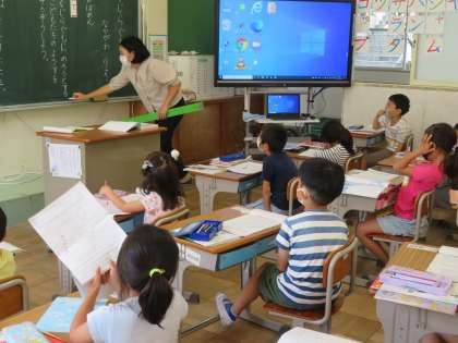 「くじらぐも」で、ぐじらぐもに乗ろうとする子どもたちの様子を想像し、考えを発表しました。