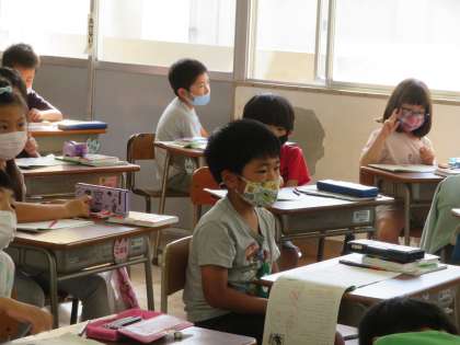 「お手紙」で、窓からのぞく、がまくんとかえるくんの気持ちを考えて発表しました。