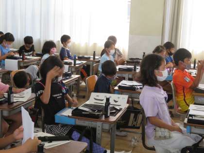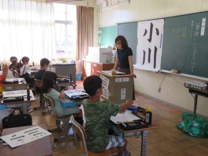 はねやはらいの筆使いに気を付けて、姿勢よく「小川」を練習しました。