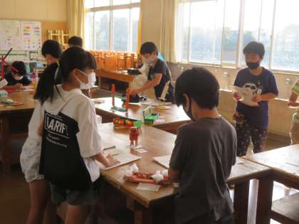 ギコギコクリエーター」で、友達の作品を鑑賞しました。友達の作品を見て、よかったところや工夫しているところを見つけて、プリントにまとめました。