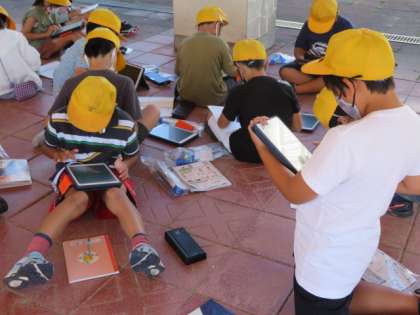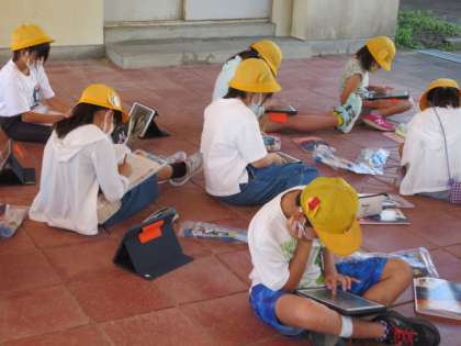 秋のヘチマの観察をしました。タブレットを使い写真をとり、ヘチマの変化について気付いたことをノートにまとめました。