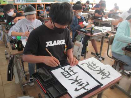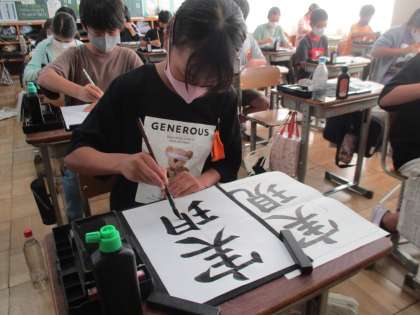 穂先の向きに気を付けたり、字の中心を意識したりして書きました。