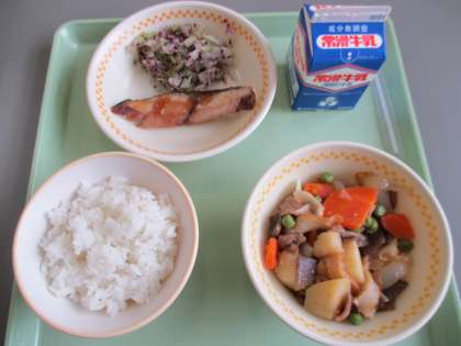 ・牛乳 ・ごはん ・ぶりの照り焼き ・肉じゃが ・キャベツのゆかり和え