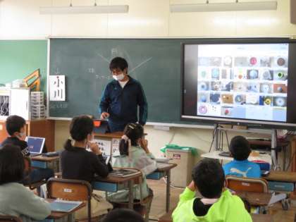 円や球には、どのようなものがあるのかを考えました。コンパスを使ってノートに円を書く練習をしました。