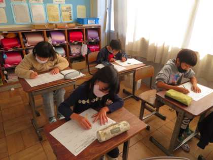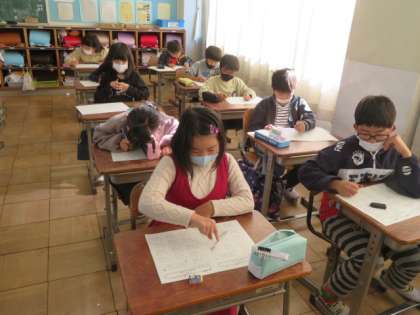 「2けた×1けた」のかけ算をプリントを使い練習しました。正確に計算していました。