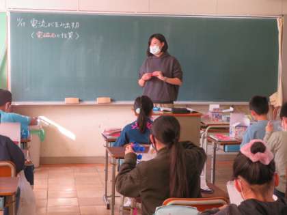 「電流が生み出す力」で、鉄のボルトとエナメル線で電磁石を作り、電磁石の性質を調べました。