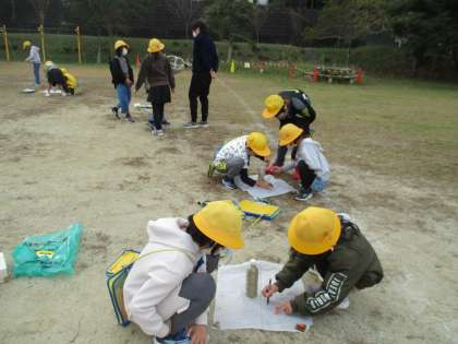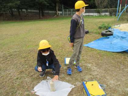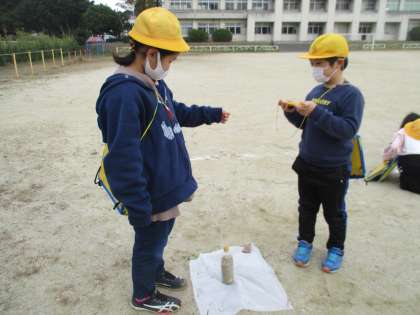太陽とかげの関係を調べるので、太陽が見えて無事に実験ができたかな。