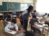 プールに入って、水泳の学習です。水中ボール探しをしました。