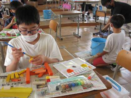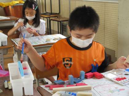 ていねいに色をぬって乾かし、次は組み立てになります。