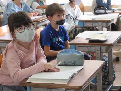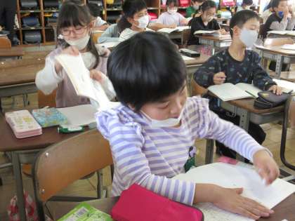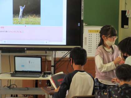 提示された写真を見て、考えた文をタブレットで提出しました。