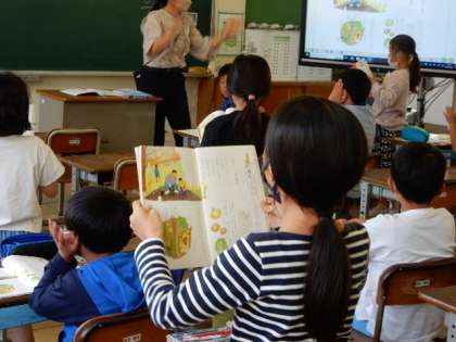 国語です。「きせつの言葉1(春のくらし)」の学習です。 音読の練習です。音読の上手な子を見習って、みんなの音読がどんどん上達しています。しっかり学び合っていますね。