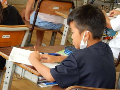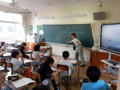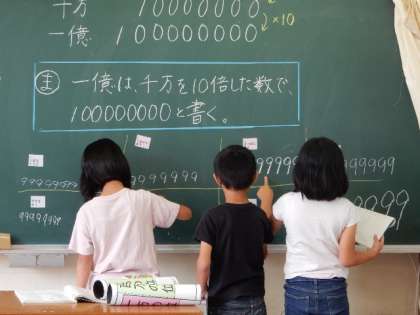 算数です。「一万をこえる数」の学習です。「1億から1を引くと?」大きな数のしくみを考えて規則性を発見して解いていきます。もっと大きな数になってもこのしくみが使えますね。