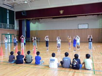 来週の野外活動に向け、5年生はキャンプファイヤーの練習です。スタンツやフォークダンス、火の舞など、通し練習をして流れを確認ながら、よりよいものになるように仕上げています。