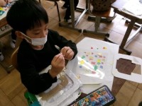 生活科です。「生きものと友だち」の学習です。校庭で見つけた生き物のえさをさがしたり、土を入れたりしています。生き物を大事に育てたいという優しい気持ちが伝わってきます。