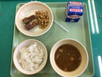 ・牛乳 ・ごはん ・ごぼう入りつくね ・切り干し大根のあえ物 ・豚肉と冬瓜の煮物