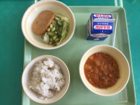 ・牛乳 ・ソフトめん ・ミートソースかけ ・チキンハムステーキ ・野菜のレモン風味あえ